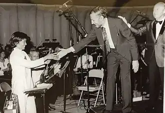 At the concert Fantasy on Japanese Woodprints (1975); Sasaki, Allan Hovhaness, Andre Kostelanetz (left to right)