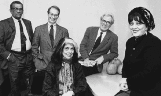 From right: Tatyana Tolstaya; Mark Strand; Susan Sontag; Richard Locke, chairman of the School of the Arts Writing Division, and Derek Walcott
