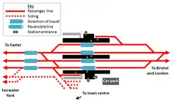 - A bay at the west end, occasionally used for Minehead/Barnstaple arrivals (track now removed)