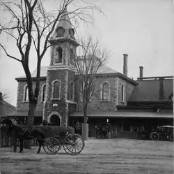 The New Bedford and Taunton Railroad opened from Mansfield to Taunton in August 1836 - one of the first branch lines in the state.[1] Its Taunton Central station was located between Oak Street and Wales Street, surrounded by the Taunton Locomotive Manufacturing Company and Mason Machine Works.[2][3]