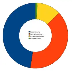 - the central government, i.e. the national government or the state ("l'État") strictly speaking, plus various central government bodies. It has a separate budget (general budget, special Treasury accounts, special budgets). It collects most of the taxes.
