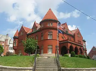 The Taylor-Zent House, also known as Hart Funeral Home, is a historic home located at 715 Jefferson Street in Huntington, Indiana, USA. The house is an excellent example of the Romanesque Revival style of architecture. It was built in 1896-98 for Enos T. Taylor, a self-made businessman and banker.[2]: 2–3