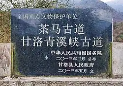 On March 5, 2013, the Tea Horse Ancient Road was announced by The State Council of the People's Republic of China as the seventh batch of national key cultural relic protection units.[15]