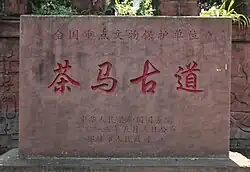 - ^ "泸州茶马古道上的"国宝"". 泸州新闻网. 2013-11-22. Archived from the original on 2014-07-08. Retrieved 2017-10-02.