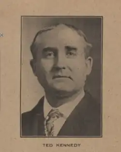 Theodore A. Kennedy (February 7, 1865 in Henry, Illinois – October 28, 1907 in St. Louis, Missouri), Ted was a professional baseball player who played pitcher in the Major Leagues from 1885-1886. He would play for the Louisville Colonels, Philadelphia Athletics, and Chicago White Stockings. Inventor of the baseball catcher's mitt, he sold his patents to the A.G. Spalding Company and opened a baseball school, specializing in teaching the curveball, and also manufactured sporting goods - specifically baseball gloves and catcher's mitts. He also invented a pitching machine and was developing the first electric scoreboard at the time of his death.