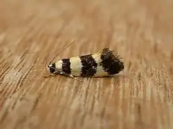Telecrates melanochrysa is a moth of the family Xyloryctidae. It is known in Australia from the Australian Capital Territory, New South Wales, Tasmania and Victoria.
