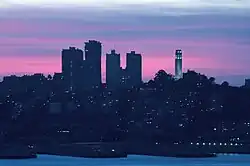 Telegraph Hill and the Coit Tower after sunset as seen from the East Bay