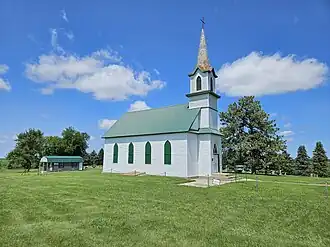 Telemarken Church and Cemetery are situated northwest of Wallace in Clark County, South Dakota. The church is an example of the rural churches established by Norwegian immigrant homesteaders. It is a Gothic Revival structure. It was built in 1901 with a wood frame supported by a poured concrete foundation and is clad with clapboard siding. Adjacent to the church is a cemetery with gravestones dating back to 1892. [2]