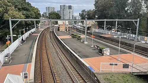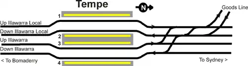 Tempe railway station is a heritage-listed railway station located on the Illawarra line, serving the Sydney suburb of Tempe in New South Wales, Australia. It is served by Sydney Trains' T4 Eastern Suburbs & Illawarra Line services. It was originally built in 1884. The 1884 buildings were designed by the New South Wales Government Railways and built by C. Mayes; the 1918 footbridge was manufactured by Dorman Long. It was added to the New South Wales State Heritage Register on 2 April 1999.[3]
