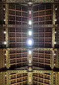 In 1929, the congregation moved to its present location at 65th Street and Fifth Avenue, where the Temple building was constructed to designs of Robert D. Kohn[a] on the former site of the Mrs. William B. Astor House. The vast load-bearing masonry walls support the steel beams that carry its roof. The hall seats 2,500, larger than St Patrick's Cathedral.[3]