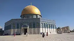 Muslim interpretations of the Quran agree that the Mount is the site of the Temple originally built by Solomon, considered a prophet in Islam, that was later destroyed.[143][144] After the construction, Muslims believe, the temple was used for the worship of the one God by many prophets of Islam, including Jesus.[145][146][147] Other Muslim scholars have used the Torah (called Tawrat in Arabic) to expand on the details of the temple.[148] The term Bayt al-Maqdis (or Bayt al-Muqaddas), which frequently appears as a name of Jerusalem in early Islamic sources, is a cognate of the Hebrew term bēt ha-miqdāsh (בית המקדש), the Temple in Jerusalem.[149][150][151] Mujir al-Din, a 15th-century Jerusalemite chronicler, mentions an earlier tradition related by al-Wasti, according which "after David built many cities and the situation of the children of Israel was improved, he wanted to construct Bayt al-Maqdis and build a dome over the rock in the place that Allah sanctified in Aelia."[33]