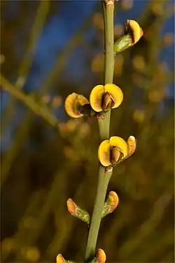 Templetonia egena commonly known as desert broom bush,[2] is a flowering plant in the family Fabaceae. It is an upright, leafless shrub with yellowish-brown pea-like flowers and grows in all mainland states and the Northern Territory in Australia.