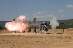 A Tennessee National Guard Soldier fires a rocket-propelled grenade at a shooting range in Bulgaria.
