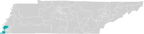 The district is located almost entirely within Tennessee's 9th congressional district, with a very small section extending into the 8th district. It overlaps with the 84th, 85th, 86th, 87th, 90th, 91st, 93rd, and 99th districts of the Tennessee House of Representatives,[4] and borders the states of Mississippi and Arkansas.[1]