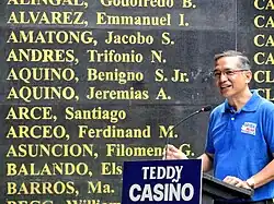 Teodoro "Teddy" Acevedo Casiño (Tagalog pronunciation: [kaˈsɪɲo], born November 15, 1968) is a Filipino activist, writer, and journalist. He was a member of the House of Representatives for Bayan Muna. He is currently the chairperson of Bagong Alyansang Makabayan (Bayan).[1] On December 4, 2024, Casiño and 74 others filed the second impeachment complaint against Vice President Sara Duterte, citing betrayal of public trust for her office's alleged misuse of confidential funds.[2][3]