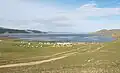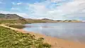 The Khorgo volcano is located near the eastern end of the lake, 10 rivers join this lake and only the Suman River springs from it.[2] The lake is located in Khorgo-Terkhiin Tsagaan Nuur National Park. According to the joint 2022 study of Mongolia's Ministry of Environment and Tourism and World Wide Fund for Nature, the area of the lake decreased by 6.4% from 7950.0 ha in 1995 to 7440.1 ha in 2015. This resulted in reduction of wetlands areas by 23.5% and increase by 39.4% of sands and eroded lands surrounding the lake.[3]