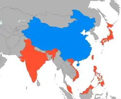 During the Second World War the Burma Road was constructed across the border as an Allied supply line to Chinese forces fighting Japan.[58] Additionally in 1941, following Japan's invasion of Burma, parts of Burma were ceded to Siam as the Saharat Thai Doem territory, thereby giving China a common border with Thailand, however these areas were returned to Burma in 1946 following Japan's defeat.[54][59][60]