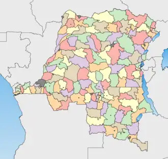 The 25 provinces of DR Congo are divided into 145 territories (fr. territoires, sing. territoire) and 33 cities (fr. villes, sing. ville).[1] Each provincial division is also a constituency of the National Assembly as well as of the Provincial Assembly of its province.[2]