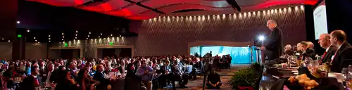 UGA President Emeritus Charles B. Knapp delivers the economic forecast for 2014 to regional business leaders at the Georgia Economic Outlook Series.