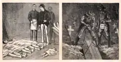 In 1883, Massachusetts Governor Benjamin F. Butler made headlines when he accused Tewksbury management and staff of a variety of abuses ranging from the venal, "financial malfeasance, nepotism, patient abuse, and theft of inmate clothing and monies,"[13] to the macabre, including, "trading in bodies of dead paupers and transporting them for a profit to medical schools," and "tanning human flesh to convert to shoes or other objects [...] from Tewksbury paupers."[13] The General Court (state legislature) organized a committee to investigate Tewksbury.[18] Political factions, and newspapers aligned with them, seized upon the story, either highlighting the most lurid parts of the testimony, or denouncing Butler as a liar using false allegations for political gain.[13]