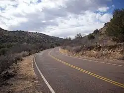 The road begins at PR 3 and crosses Keesey Creek before turning east in Keesey Canyon. Like PR 3, the road also has connecting drives acting as loops and cul-de-sacs to campgrounds and park facilities. After leaving the campground, the road begins steeply ascending the ridge between Keesey and Hospital canyons on a climb requiring several switchbacks.[10] The road connects with drives to scenic overlooks, picnic tables, and trail heads before terminating after 2.8 miles (4.5 km) at a scenic overlook and trail head at the boundary between the park and Fort Davis National Historic Site.[3][4]