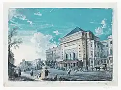 It was first built very rapidly in 1781 under the direction of Nicolas Lenoir (1726–1810) to house the Paris Opéra, whose previous home, the second Salle du Palais-Royal, had burned down on 8 June 1781. The new theatre had a capacity of about 2,000 spectators and included a parterre with the lowest-priced tickets sold only to males who stood throughout the performances, an amphitheatre, and four rows of boxes. The Opéra used the theatre from 27 October 1781 until August 1794.[1][2]