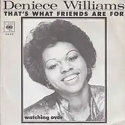 "That's What Friends Are For" is a song recorded by Deniece Williams, released as a single in July 1977 by Columbia Records.[1] The single reached No. 8 on the UK Singles Chart.[2] "That's What Friends Are For" was also certified Silver in the UK by the BPI.[3]
