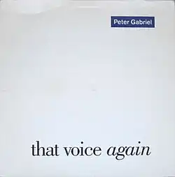 "That Voice Again" is a song by English rock musician Peter Gabriel from his 1986 album So. The song was released as a promotional single and reached No. 14 on the Billboard Album Rock Tracks chart. Gabriel identified "That Voice Again" as one of his favorite songs on the album.[2]