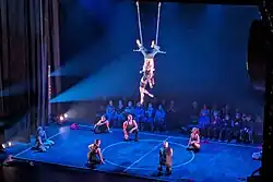 The choreography and integration of circus into the Broadway revival of the musical Pippin[27] was entrusted to The 7 Fingers. In 2014, the show was performed 420 times at the Music Box Theatre in New York. Pippin also toured the US.