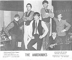 The Aardvarks from Muskegon, Michigan, had their origins in a previous group, the Hitchhikers, whose membership included lead vocalist Daryl Dingler and drummer Garey Walker, who went on to form the new band in late 1964.[1][2][3] Initially, the lineup consisted of group leader Dingler on lead vocals and Walker on drums, along with John Carter and Rick Spatt on guitars.[1][4] After Spatt departed for college, the band decided that it needed keyboards, so Dingler asked Rick Kuerth to join on organ.[1] Kuerth played classical piano and knew Gary Walker at high school, where they both played percussion in the marching band.[1] According to Kuerth, "I never considered us a 'garage band'. Yes, we originally rehearsed in Garey's basement, but he did not even have a real garage. One of the first things Chuck did was to rent us a building for us to rehearse in (our rehearsal hall). We never played in a garage, except once at my house. We were able to play as loud and long as we wanted and didn't bother anyone."[1] The band needed a bass player and eventually found Terry Potts to fill the role.[1] According to Kuerth, "I see myself and Terry as being part of an evolution in Darryl's vision for the group that really worked out quite well."[1]