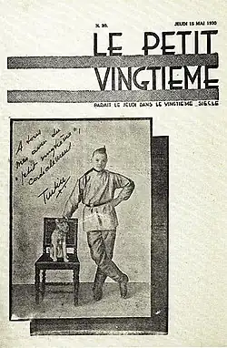 In 1928, Norbert Wallez put him in charge of Le Petit Vingtième, a weekly youth supplement whose first issue appeared on November 1.[a 4] It was in this periodical that Tintin au pays des Soviets, the first episode in the Adventures of Tintin, appeared on January 10, 1929.[a 3]