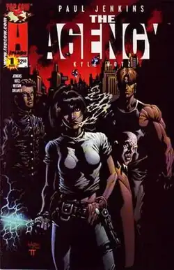 The Agency was a comic book published by Top Cow and Image Comics from 2001 to 2002. Written by Paul Jenkins with art by Kyle Hotz, the book followed a team of cyborg mercenary police in a dystopian future United States. The entire six issue run of the title was collected and released as a trade paperback in 2007.