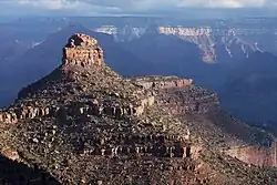 The Battleship is a 5,850-foot (1,780 m)-elevation summit located in central Grand Canyon, in Coconino County of northern Arizona, United States. The ridgeline, Battleship landform forms part of the western border of Garden Creek Canyon, which contains the Bright Angel Trail down to the Colorado River, and across it to Phantom Ranch. The east border of Garden Creek Canyon is the South Rim, with the overlooks of Grandeur Point and Yavapai Point. The Battleship is 1.5 miles (2.4 km) northwest of Yavapai Point, 1.5 miles due-north of Grand Canyon Village, and roughly 2.0 miles (3.2 km) southwest of the Colorado River.