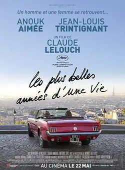 The Best Years of a Life (French: Les plus belles années d'une vie) is a 2019 French drama film directed by Claude Lelouch.[1] It was screened out of competition at the 2019 Cannes Film Festival.[2] It follows the lead characters featured in the earlier films A Man and a Woman (1966) and A Man and a Woman: 20 Years Later (1986). It is also Trintignant's and Aimée's final film roles during their lifetimes until their deaths in 2022 and 2024.