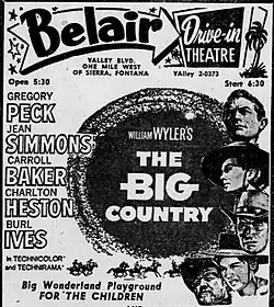 9. ^ "'The Big Country' with Gregory Peck, Jean Simmons, Carroll Baker and Charlton Heston". Harrison's Reports: 128. August 9, 1958.