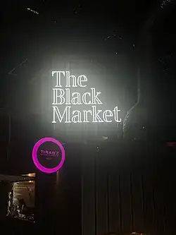 The Black Market is an indoor food hall and multipurpose venue situated on Monahan Road, Ballintemple, in Cork City, Ireland. It is located in the same industrial area as Cork's Marina Market. The Black Market opened in September 2021,[2][3] one year after the opening of the Marina Market, and occupies a relatively small space at the back of an industrial unit. Its name and identity derive from its aesthetic theme: nearly everything is painted matte black, including shipping containers, the roof, and furnishings.