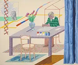 - ^ Hockney, David; Barron, Stephanie; Tuchman, Maurice; Kitaj, R. B.; Geldzahler, Henry; Knight, Christopher; Schiff, Gert; Hoy, Anne; Silver, Kenneth E.; Weschler, Lawrence (1988). David Hockney : A Retrospective. Los Angeles County Museum of Art, Metropolitan Museum of Art, Tate Gallery (First ed.). Los Angeles, California: Los Angeles County Museum of Art. p. 41. ISBN 9780810911673. OCLC 16868050.
