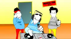 The Booo Krooo (occasionally also spelled Boo Kroo) started life as a comic strip and then turned into a web-series and then a UK adult animated sitcom created by Matt Mason, Alex Donne Johnson and Julian (Art Jaz) Johnson for the now defunct British TV network Channel U (now called Now 70s).[1]  The series follows the mis-adventures of three up-and-coming grime/rap MCs who are constantly trying to find ways to get famous, get girls or save the world.[2]