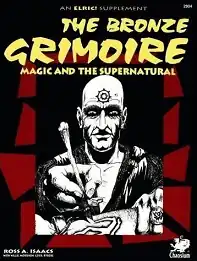 Chaosium published Elric!, a fantasy role-playing game based on the Elric of Melniboné novels by Michael Moorcock, in 1993. The following year, Chaosium released the supplement The Bronze Grimoire, an 80-page softcover book designed by Ross Isaacs, Lynn Willis and Mark Morrison, with interior art by Ben Monroe and cover art by Charlie Krank.[3]
