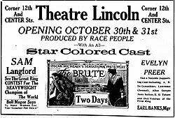 The Brute is a 1920 silent race film directed, written, produced and distributed by Oscar Micheaux. No print of the film is known to exist and the production is believed to be a lost film.[2] The original version of the film included a scene where the boxer defeats a white rival, but Micheaux was forced to remove the scene by censors.[3]