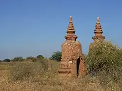 Buddhism is a major theme in the film, with a monk saying "Burma is Buddha's country."[7] Author Catherine Russell writes that Mizushima, initially stealing a monk's robes and disingenuously posing as a Buddhist monk, becomes more devout. However, Russell argues that Mizushima's Buddhism, in his salute of graves and use of distinctly Japanese boxes, remains a form of Japanese nationalism.[6] Professor Ronald Green argues that Mizushima's mission as a monk to bury Japanese soldiers is a pilgrimage, in which his mounds resemble Buddhist stupas, and his practice of saluting the graves is reminiscent of Buddhist rituals at stupas.[8] The film's visuals also communicate Buddhist messages, with the panoramas in land, and then the ocean at the end of the film, showing the "broadness" of Mizushima's messages.[9] Shots of full moons invoke Buddhist symbols of awakening.[10]