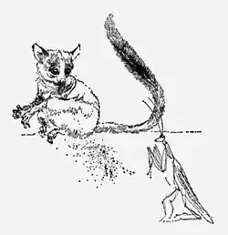 Kamau preys upon a mantis for its supper, as illustrated by Victor Ambrus.