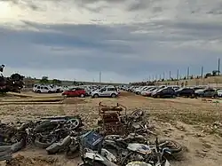 A total of 1,600 damaged vehicles were transferred to a car lot located west of the Tkuma settlement and northwest of Netivot.[1] In the days following the Nova music festival massacre,[8] 860 burnt and damaged vehicles scattered along the sides of Route 232[9]—most of them from the Nova festival—were transported from the Gaza envelope to the Tkuma lot, and another one 500 metres (1,600 ft) north of the entrance to the Re'im kibbutz.[8]