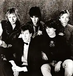 ![]() The Cars, c. 1980. (L–R) Greg Hawkes, Elliot Easton, David Robinson, Ric Ocasek, Benjamin Orr. | |
