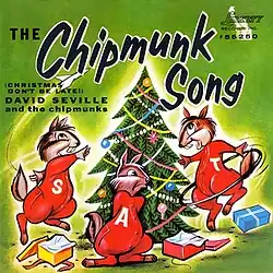 "The Chipmunk Song (Christmas Don't Be Late)" is a 1958 novelty Christmas carol written and recorded by Ross Bagdasarian (under the stage name of David Seville). Bagdasarian sang the Christmas carol, varying the tape speeds to produce high-pitched "chipmunk" voices, with the vocals credited to Alvin and the Chipmunks, Seville's cartoon virtual band[1] and later media franchise.[2] The song was nominated for Record of the Year in the 1st Annual Grammy Awards, where it also won three Awards.[3]