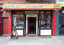 The beginnings of the City Reliquary date to 2002, when founder Dave Herman began displaying objects in the windows of his ground-floor Williamsburg apartment on the corner of Havemeyer and Grand Streets.[1] Passersby were drawn to the quirky array of local artifacts, and Herman received object donations and loans from people who wanted to share their own "relics" with the greater New York community. As the collection grew, Herman moved the repository to a location on Metropolitan Avenue. The new museum opened on April 1, 2006, with a ribbon-cutting ceremony and proclamation reading by Marty Markowitz, Brooklyn Borough President from 2002 to 2013.[2][3][4]