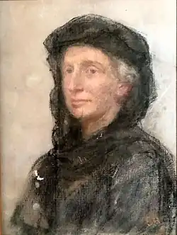 The Cloisters was built by Quaker Miss Annie Jane Lawrence (16 April 1863 – 3 August 1953), the daughter of Alfred Lawrence (1826–1875), who, with his brother Frederick, owned 'Lawrence Brothers, Smiths and Founders', and his wife Mary Elizabeth (née Ridge, 1838–1903).[1] Her grandfather William Lawrence (1789–1855) came from humble origins but went on to be elected Master of the Worshipful Company of Carpenters in 1848 and an Alderman of the City of London, while her uncle Sir James Lawrence was Lord Mayor of London in 1868. Her younger brother was the Labour politician Frederick Pethick-Lawrence, 1st Baron Pethick-Lawrence (1871–1961).[2] In 1881 she was a pupil at the School for Ladies in Hove in Sussex, while in 1895 she visited Boston in the USA.[3]
