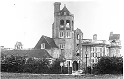 Designed by architect William Harrison Cowlishaw, building commenced on the 3-acre (1.2 ha) site in 1905, and the building opened on 17 January 1907, having cost the then huge sum of £20,000. Miss Lawrence built a house for herself, 'Cloisters Lodge', alongside.[4]