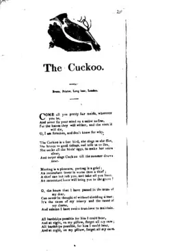 (In many American versions, the cuckoo patriotically "never sings 'cuckoo' till the fourth of July". In some ornithologically observant English versions "she sucks little birds' eggs to make her voice clear.")[5]