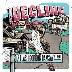 Flash Gordon Ramsay Street was released on Pee Records on August 30, 2019, and followed with an Australian tour supported by Nerdlinger that October.[20] Flash Gordon Ramsay Street featured guest vocals by Nuno Pereira from A Wilhelm Scream on the track War. Flash Gordon Ramsay Street was distributed internationally by Bearded Punk Records (EU), Disconnect Disconnect Records (UK) and Thousand Island Records in North America, marking the closure of The Decline's contract with Bird Attack Records in the USA.